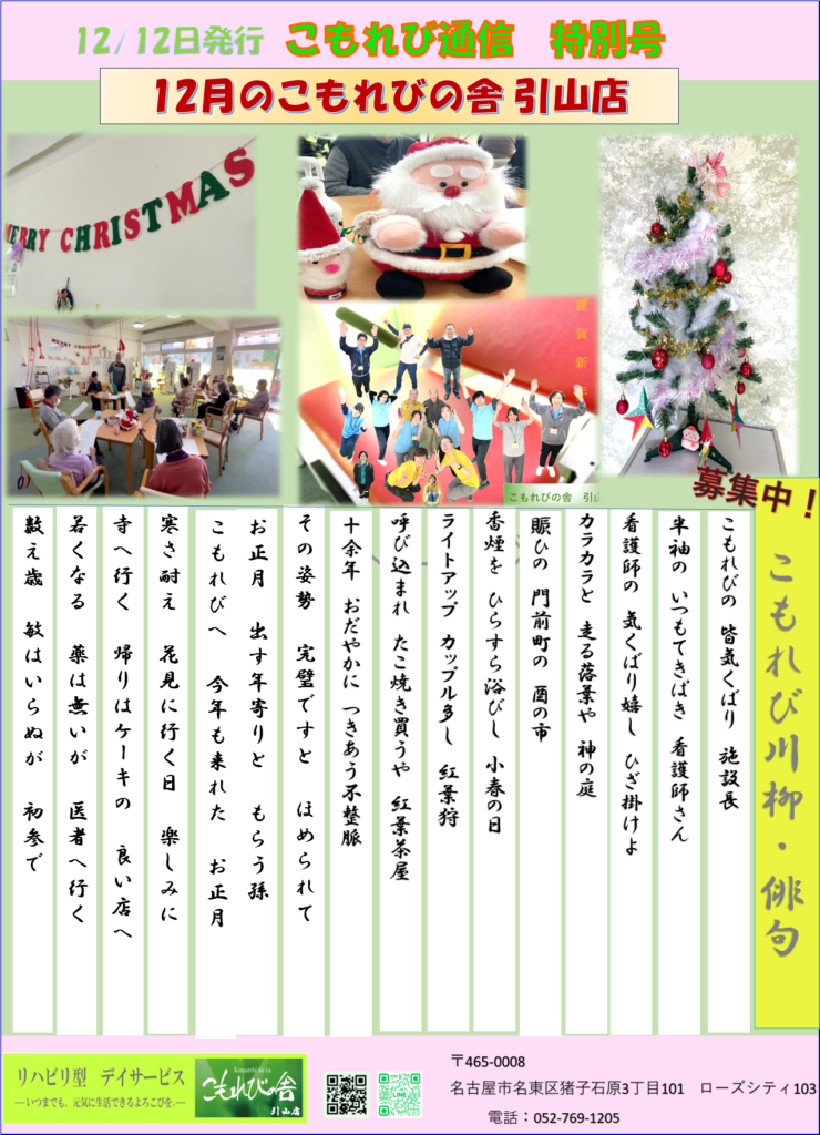こもれびの舎引山店 年末年始特別号~師走~