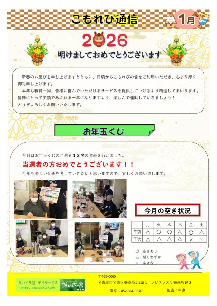 梅森坂店 こもれび通信1月号❣